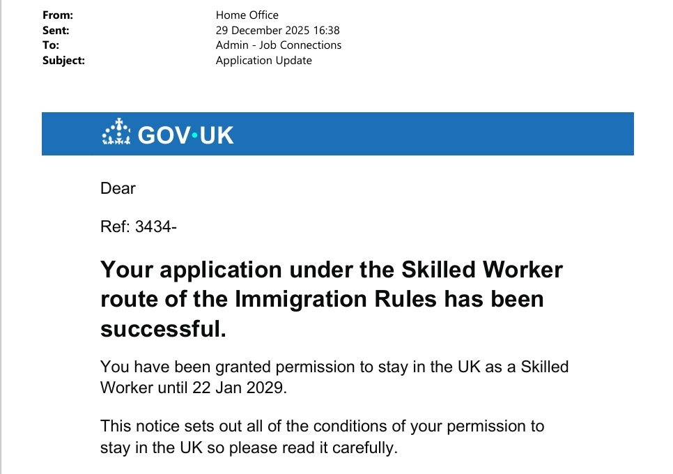 We review your visa status, job role, and sponsor details.